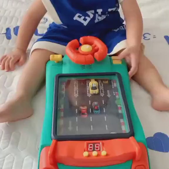 ✔ Simulated driving with real controls – Kids spin the steering wheel to avoid oncoming cars; if they crash, the game resets, teaching focus and timing. ✔ Speed control switch – Adjust the car speed for more excitement and higher difficulty as your child improves.