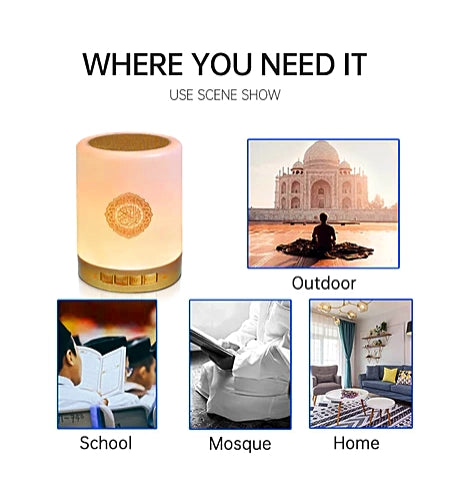 A peaceful all-in-one Quran speaker and lamp that removes the need for multiple devices — giving you clear recitation and calming light instantly.